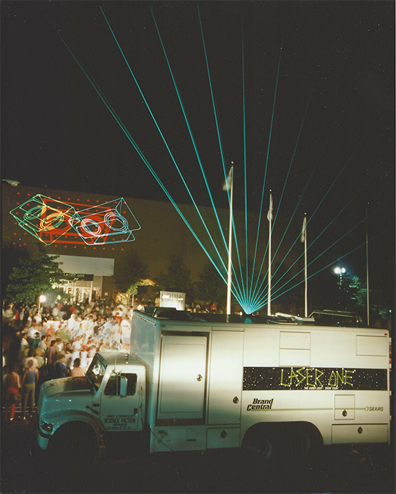 How many "public relations agencies" build a 16-ton, four color laser truck to "publicize" a new chain of appliance and electronics stores?